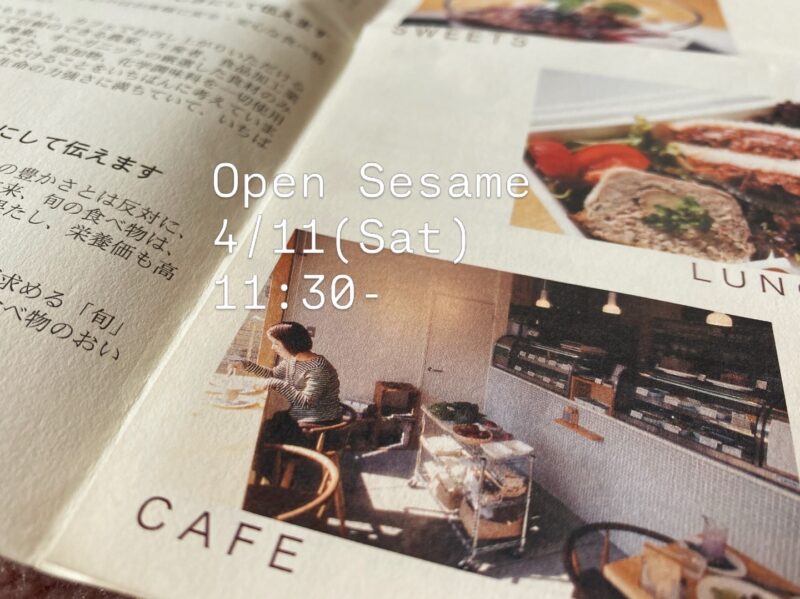 4/11(土)は、11:30-滋賀.大津にあった伝説のカフェオープンセサミさんが、一年半ぶりに